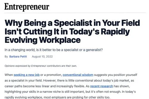 Why Being a Specialist in Your Field Isn't Cutting It in Today's Rapidly Evolving Workplace